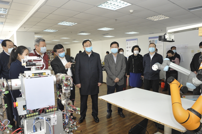 戴玉林一行重点对大连大华中天科技有限公司进行了调研,在该公司的工业机器人教育实训中心,观看了机器人产品展示,听取了工业与服务机器人全流程解决方案有关情况介绍,对企业发展作了全面了解。