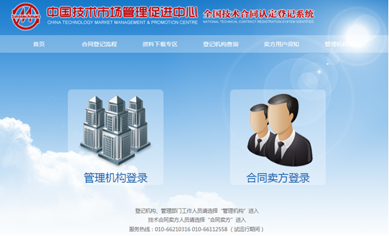 2.登录“全国技术合同认定登记系统”,选择“合同卖方登录。”网址:http://210.76.97.54/