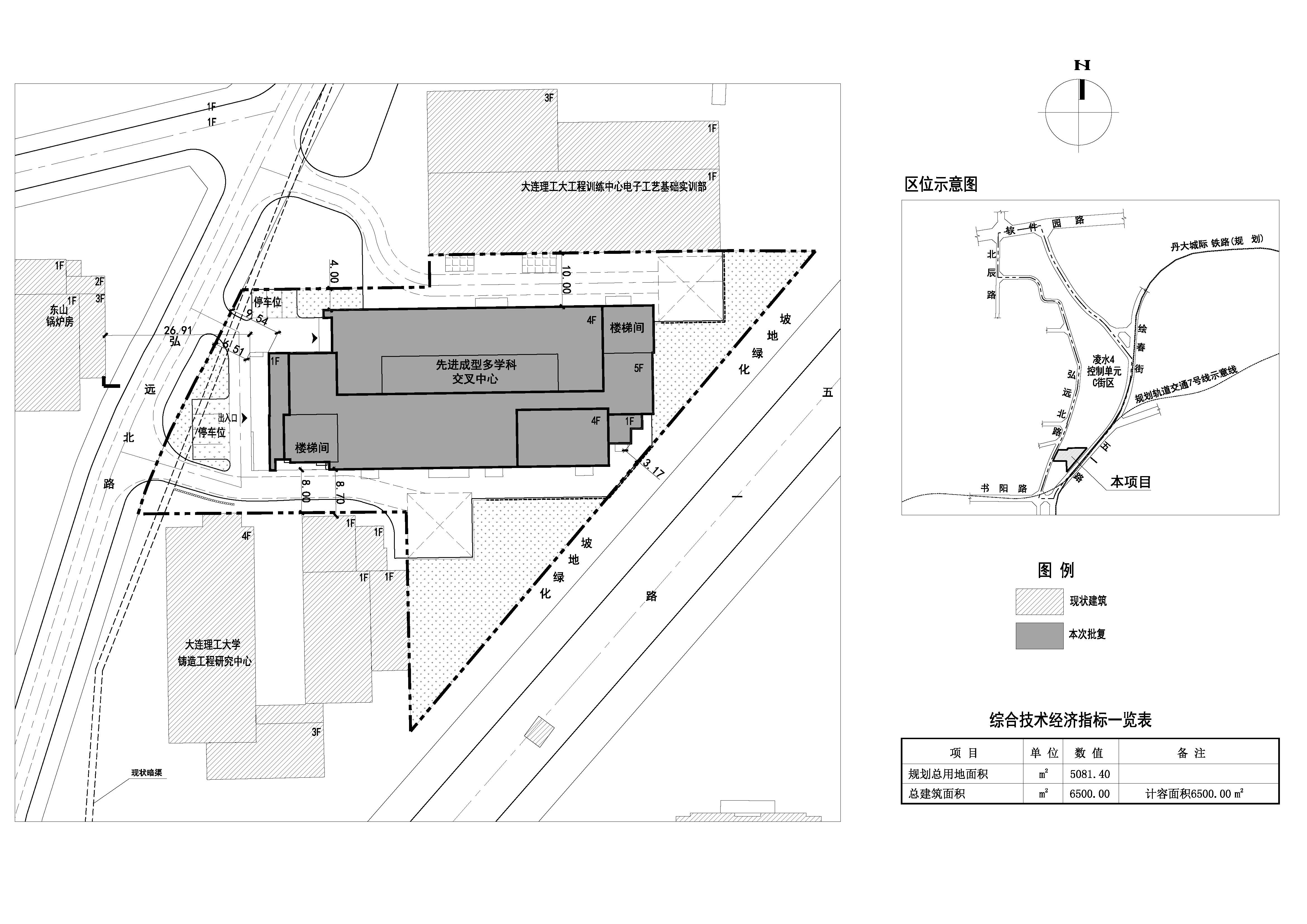 项目位置:大连理工大学凌水校区内,临近东门,南至学校铸造中心,北至学校起重实验室,东至大连市五一路,西至校内弘远路