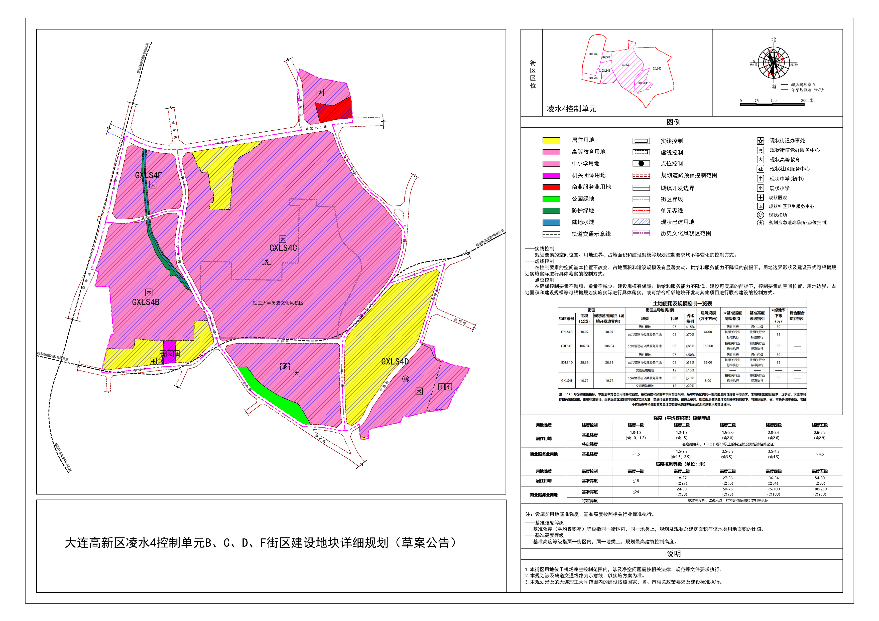 区域位置:规划街区位于凌水4控制单元中部,规划范围东至五一路、文静街,南至凌水路,西至博远路,北至规划大工路。