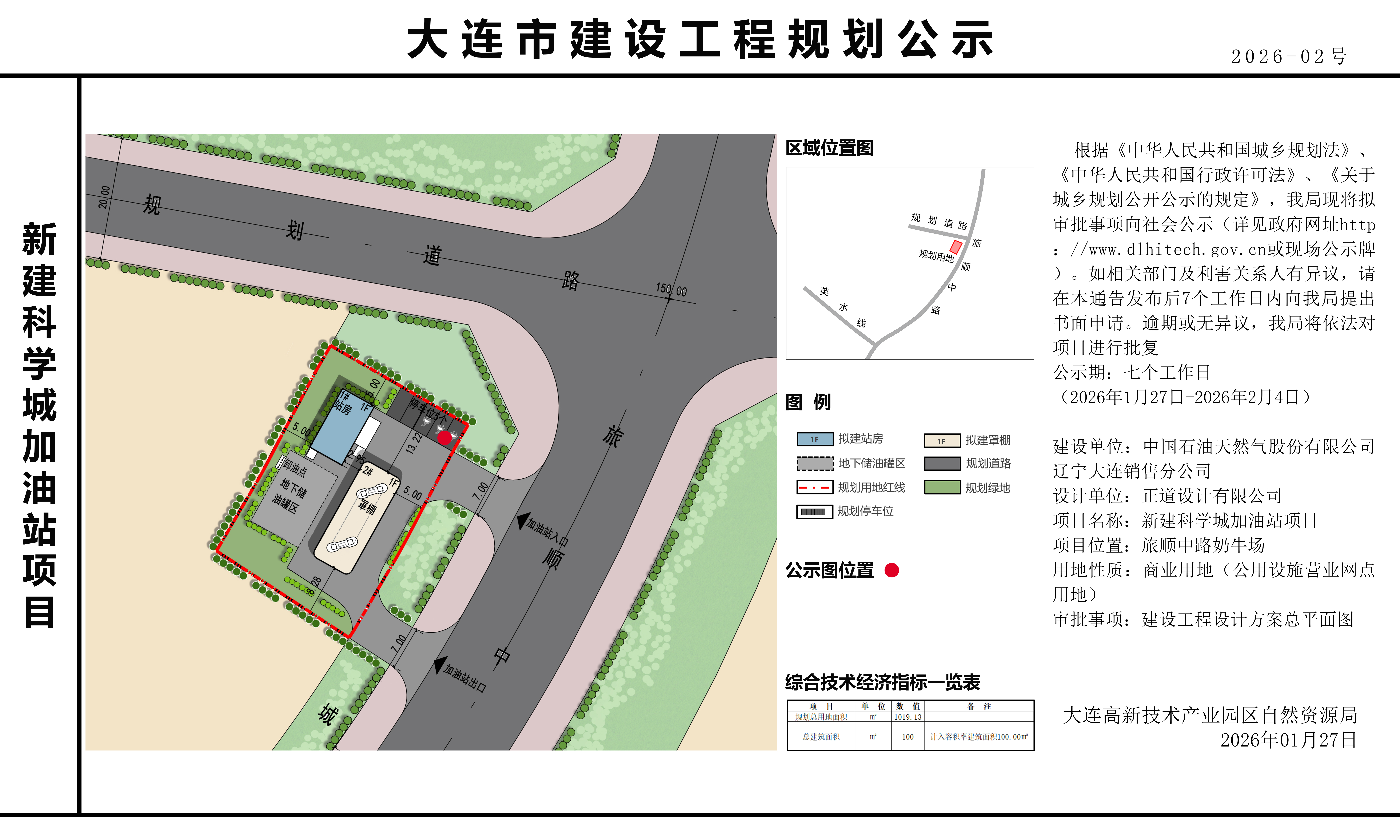 根据《中华人民共和国城乡规划法》、《中华人民共和国行政许可法》、《关于城乡规划公开公示的规定》,我局现将拟审批事项向社会公示(详见政府网址http://www.dlhitech.gov.cn或现场公示牌)。如相关部门及利害关系人有异议,请在本通告发布后7个工作日内向我局提出书面申请。逾期或无异议,我局将依法对项目进行批复。