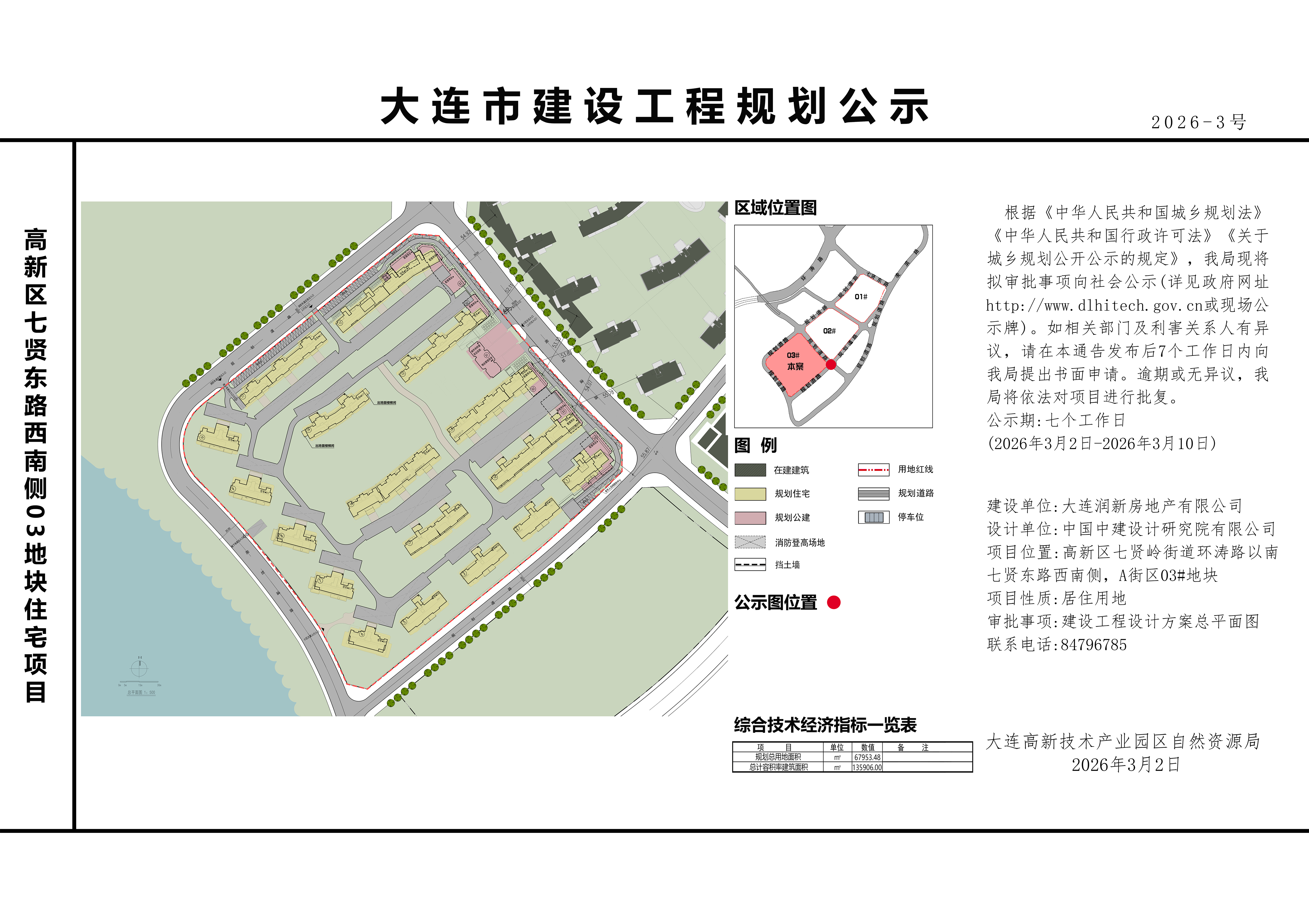 项目位置:高新区七贤岭街道环涛路以南、七贤东路西南侧,A街区03#地块。