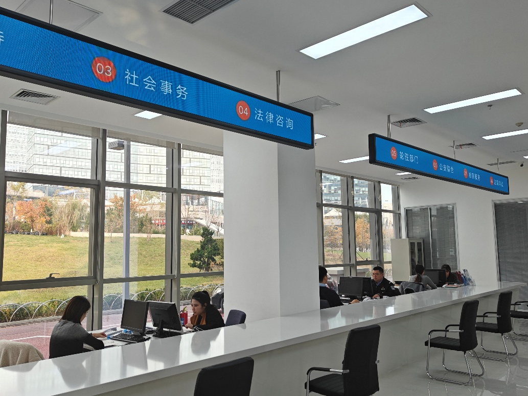 高新区综治中心按照“一中心多用、多中心合一”的理念,整合了诉讼服务中心、检察服务中心、公共法律服务中心等职能,科学设置了前台导引区、窗口受理区、来访接待区、多元调解区、诉讼服务区等5大功能区,通过14个部门常驻、轮驻等形式,打造了集矛盾调解、指挥调度和综合办公于一体的综合性实战平台,实现了群众诉求“只进一扇门,办成多件事”的便捷服务。